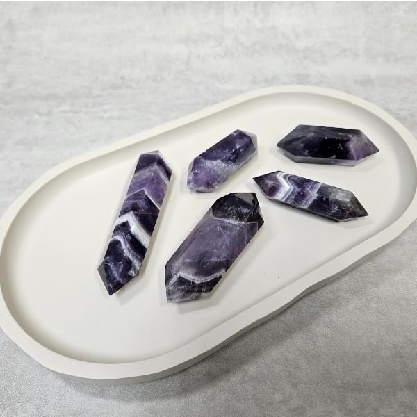 The Bijoux feature Dream Amethyst in purple and White swirls, sculptural gemstone accents that radiate calming energy, serenity, and spiritual balance.